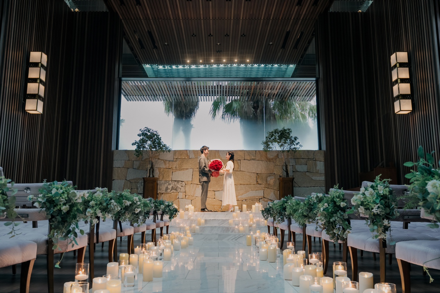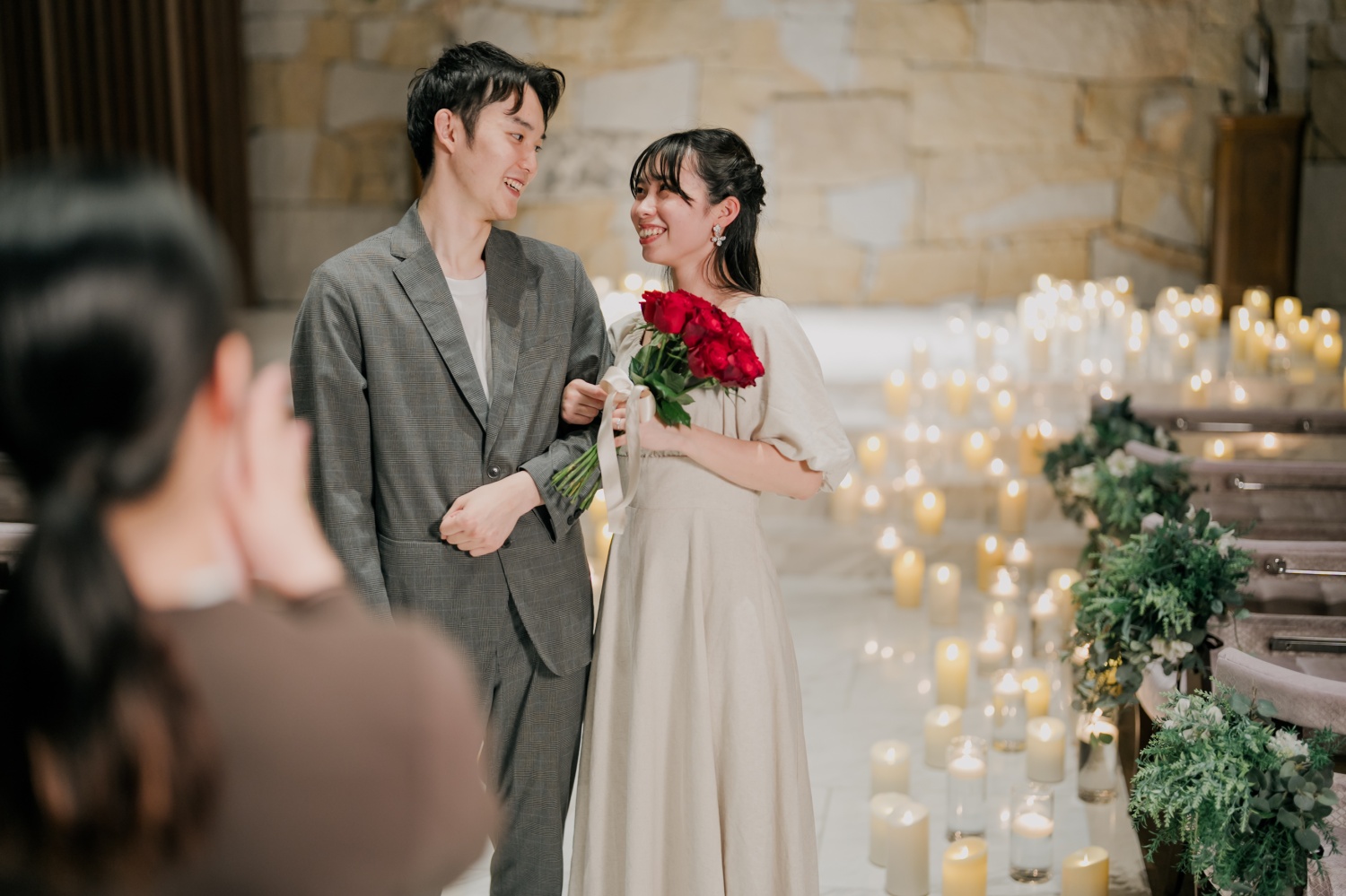 リニューアルしたチャペル。キャンドルの灯りが幻想的に輝く空間でロマンチックなプロポーズが叶います。