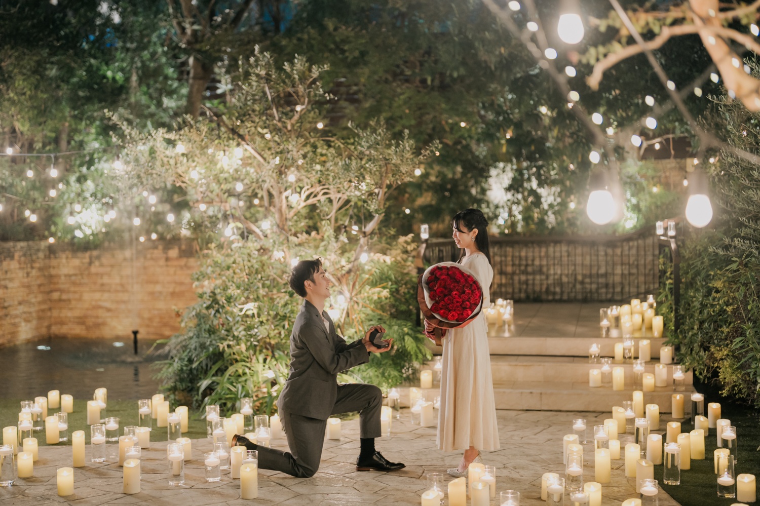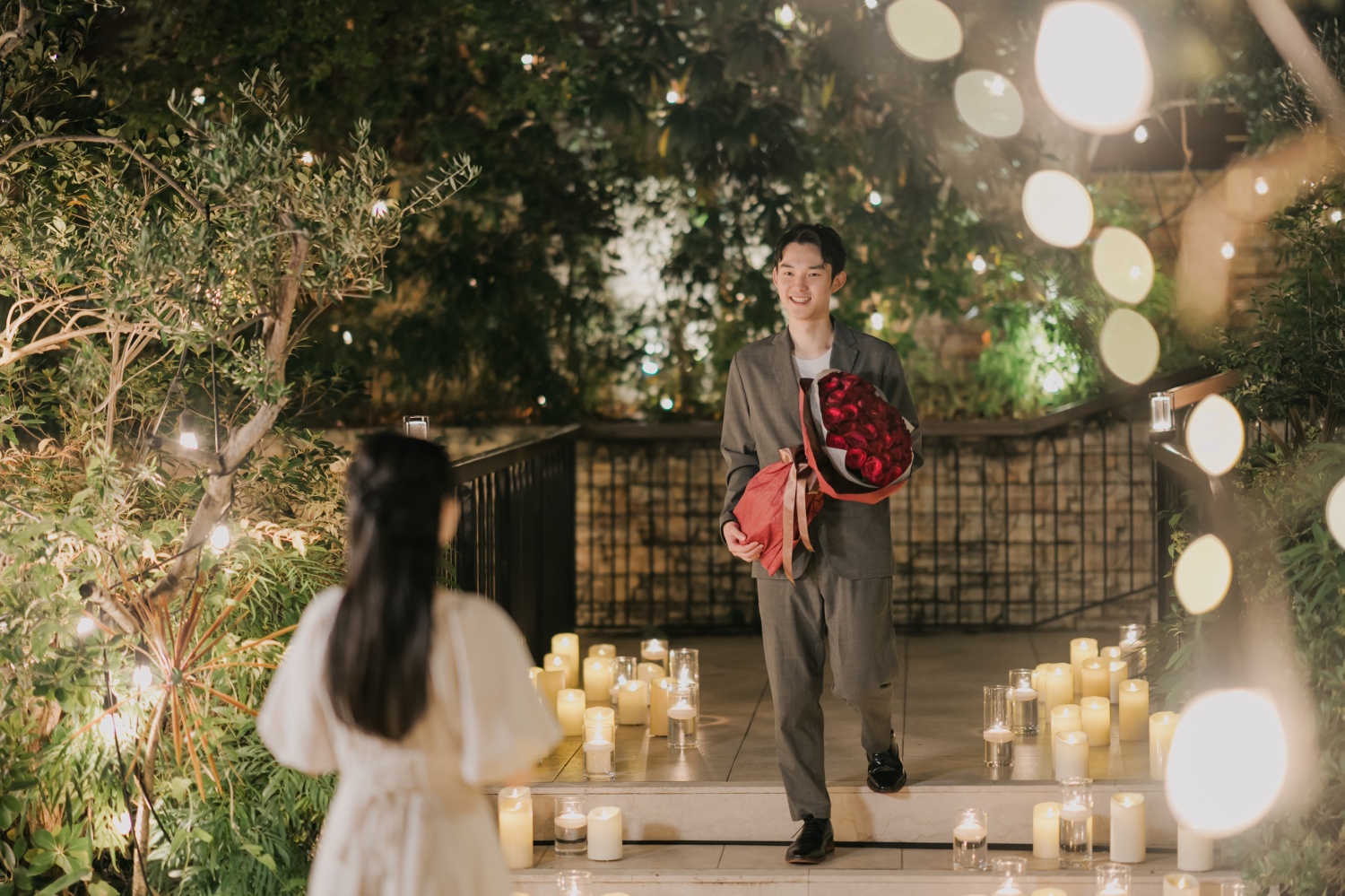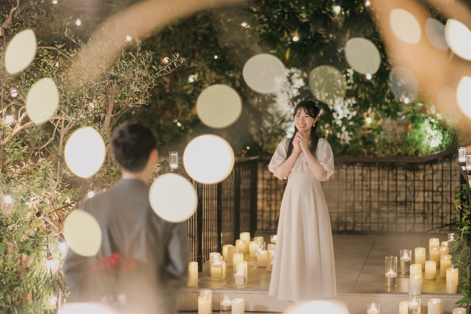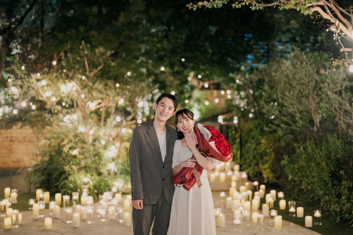 キャンドルに包まれたガーデンでのプロポーズ。もちろんサプライズも可能です。