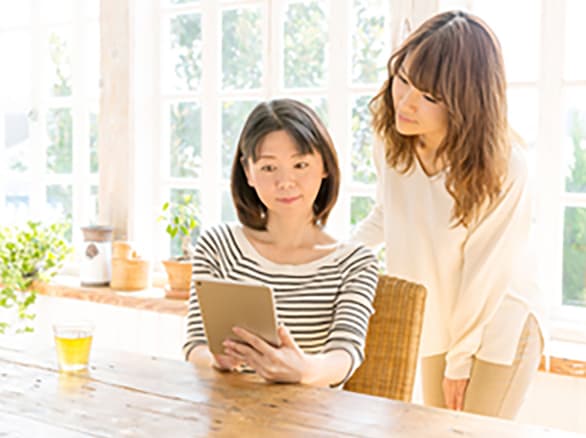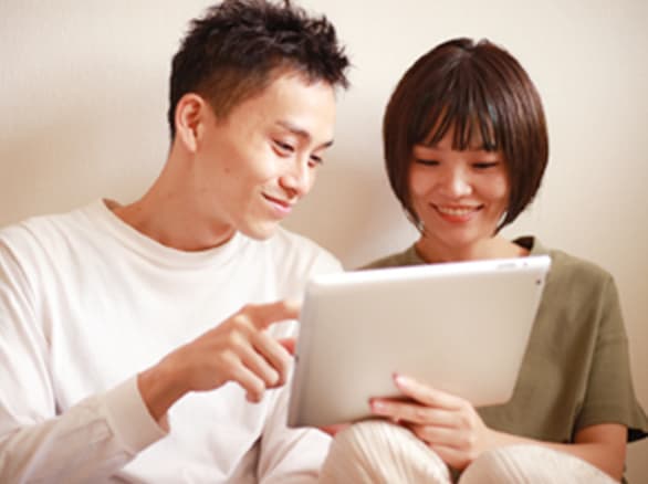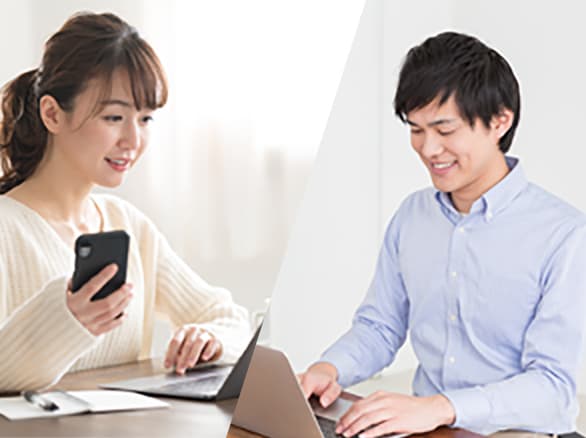 開催中のオンライン相談会を見るおふたりのスマートフォン、パソコンから専用ルームにアクセス