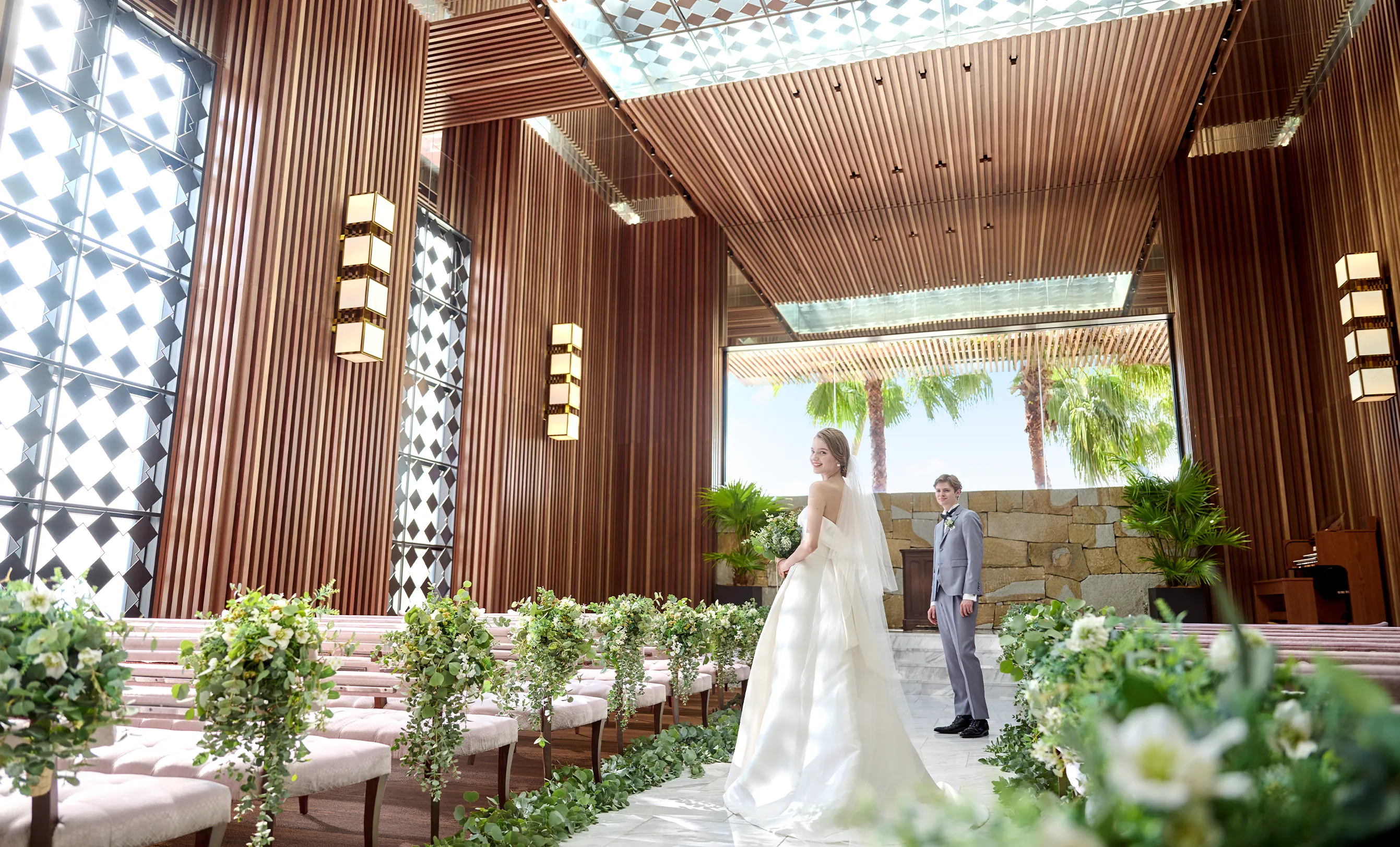 アクセスに恵まれ、海外を感じさせる邸宅「ラピスアジュール」。一歩足を踏み入れれば、アメリカのリゾートデザインをモチーフにした、青空まで貸切の開放感あふれる空間が広がります。自然光が差し込む圧巻のチャペルや緑豊かなガーデンまで、すべてを1組で貸し切るプライベートなウエディングが叶います。