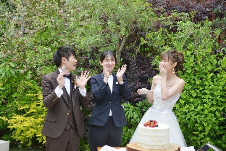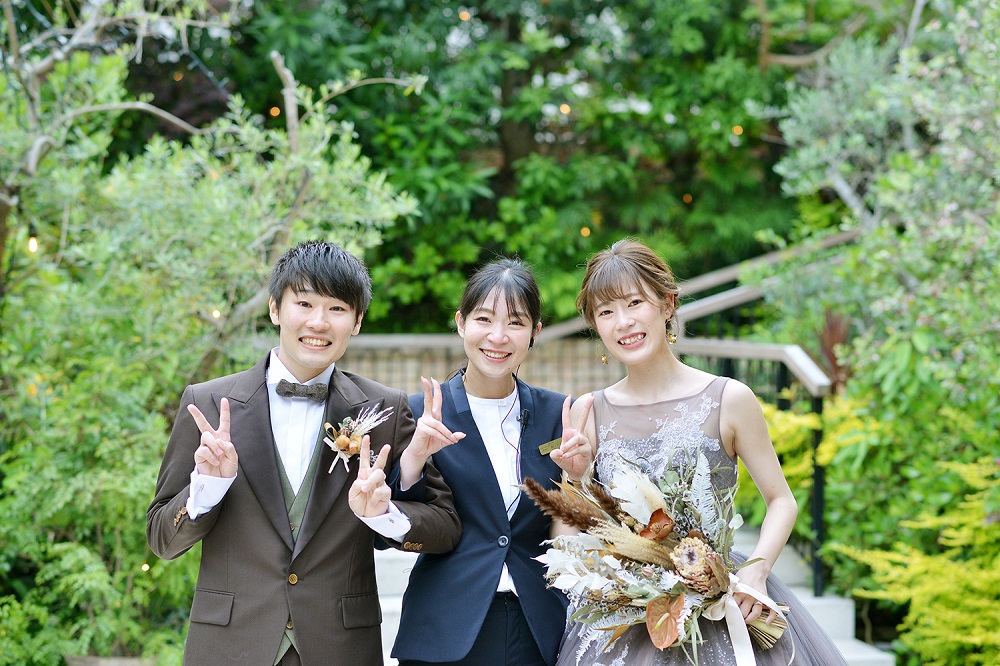 よしきさん えりさん 改めましてご結婚おめでとうございます! 「必ず良い日にします!」とお約束させていただいてから、約1年半のお付き合いの中で、楽しい時間も、おふたりがなやんでいる時間も、共有させていただいていたので、結婚式当日を迎えることが私自身も楽しみで仕方ありませんでした。そして今の情勢の事もあり、立ち止まってしまうことも多々あった分、当日のよしきさんとえりさんの弾ける笑顔を近くで見守ることができ幸せでした♪ 「最高でした!!!」と最高の笑顔で言っていただき、私も最高です!!! ケーキセレモニーのサプライズバイトを頂いた時は、これまでの日々が走馬灯のように駆け巡り、涙が堪えきれませんでした・・・!! これからもずっとずっと仲良し夫婦でいてくださいね♪ そしてラピスアジュールにもたくさん帰ってきてください^^ お幸せに♪