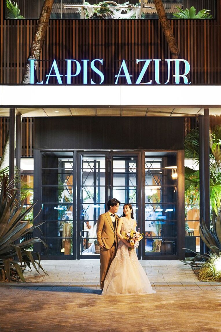 式場を選ぶ条件として、【ふたりが列席したことがない】【遠方ゲストのために駅から近い】ことを挙げておりました。実際にラピスアジュールへ足を運んでみると、私たちが求めていた条件に加え、バージンロードが長くゲストに私たちの晴れ姿をなるべく近くで見てもらえること、お料理が美味しいこと、ガーデンスペースが広いためみんなで楽しむ演出ができそうなことなど、私たちが当初思い描いていた【ゲストと一緒に楽しい時間を過ごす】という理想の結婚式を、ここでなら実現できると思い、ラピスアジュールに決めました。
