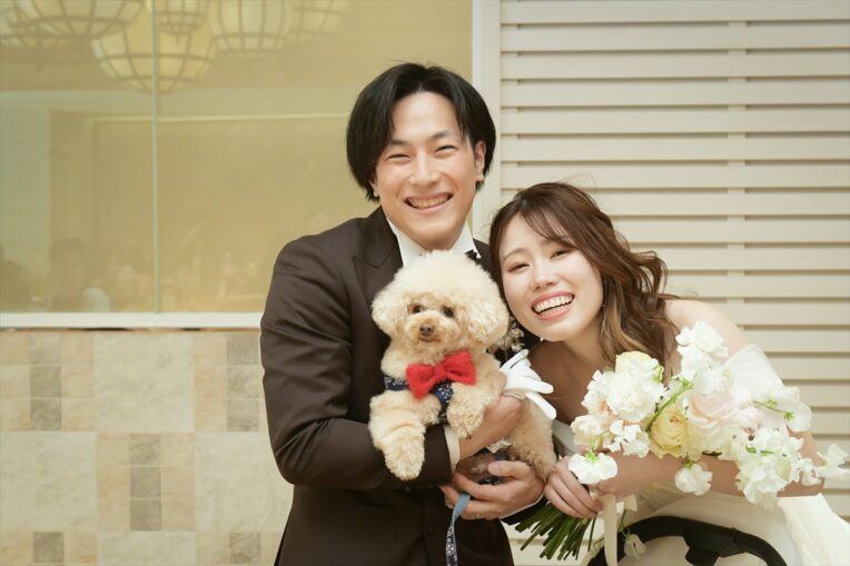プロポーズのあと、最初に参加したブライダルフェアがラピスアジュールでした。駅が近くアクセスがよく、館内もとても綺麗でした。スタッフの皆さんの対応もとてもよく、なにより「飼っている犬を連れて行きたい!」という希望も叶いそうだったので、他と比較することなくラピスアジュールに決めました。 ゲストの前で私たちの未来を誓い、そしてゲストへ感謝の気持ちを伝えることができた結婚式となりました。私たちの挙式・披露宴は特別なことをした訳ではありませんでしたが「ゲストとの時間をたくさん作りたい!」と、担当プランナーの菊池さんには相談に乗ってもらい、準備を進めてきました。ゲストの方々からは、「とても良い式だった」「ゲストのことを考えた素敵な式でした」と声をかけていただき、本当に嬉しかったです。 正直、準備期間は大変でしたが、当日はこれまで頑張って準備してきた苦労もわすれてしまうほど、一瞬一瞬が本当に楽しく幸せな一日でした。 担当プランナーの菊池さんは、どんな要望、質問にもおつきあいいただけて、とてもありがたかったです。私たちは、方向性がなかなか定まらない時もありましたが、いつでも菊池さんは全力で、私たちの考えを最後まで聞いてくださいました。また、どのスタッフの方もとてもお話しやすく、毎回の打ち合わせも当日の式も、とても楽しかったです。一緒に盛り上げてくださったスタッフの皆様のおかげで、ゲストからも「楽しかった」と言ってもらえる素敵な一日を過ごすことができました。本当にありがとうございました!