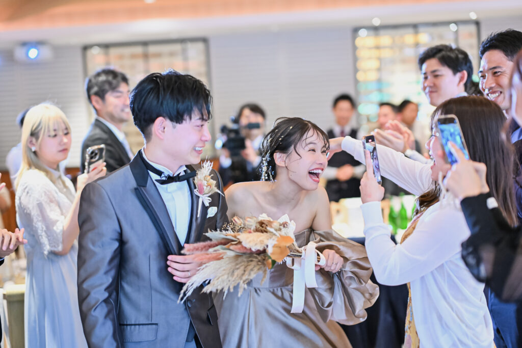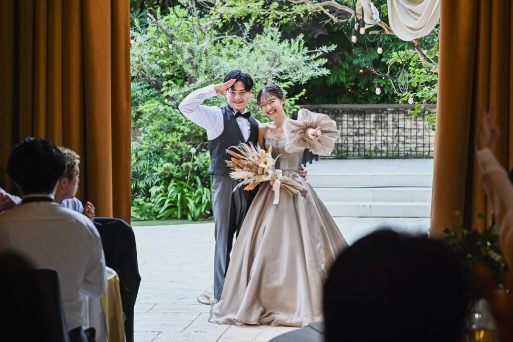 おふたりの結婚式では、ワンちゃん3匹の登場する挙式と、コーラが大好きな新郎たけのりさんプレゼンツコーラ早飲み対決がこだわりポイントです!2人と3匹という家族のカタチを、挙式で皆様にご覧いただきました!楽しいこと好きなたけのりさんは、大好きなコーラの早飲み対決を行いました!バラエティ豊かなご友人の参加も、こだわりポイントの一つです!