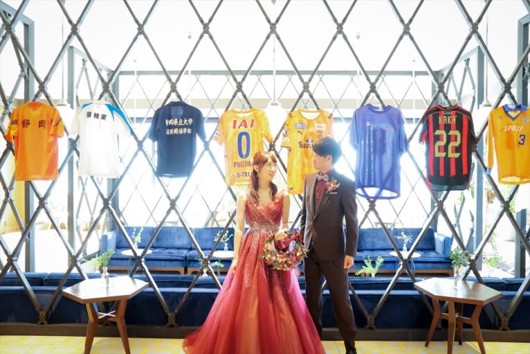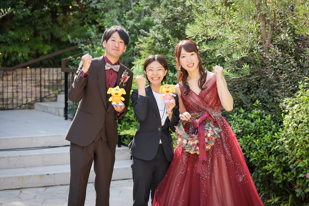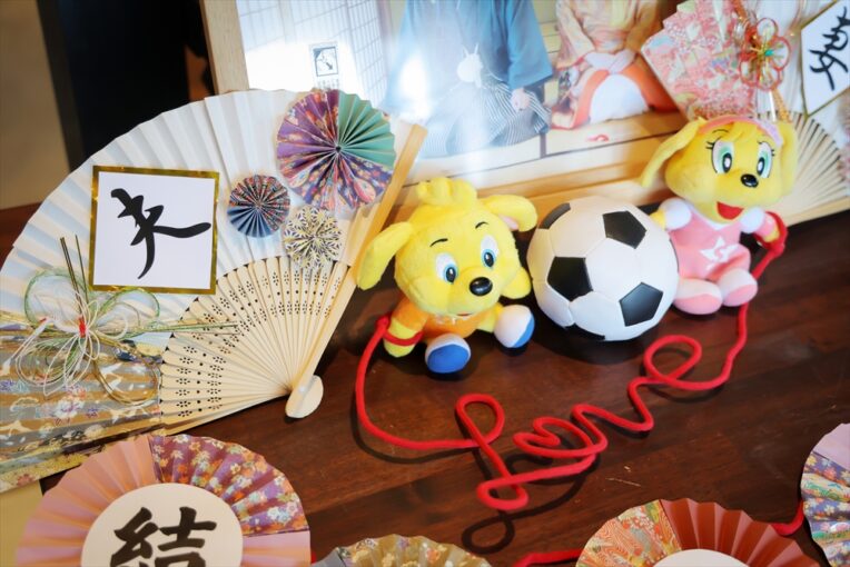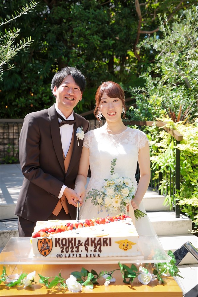 フルーツがたっぷり飾られたウエディングケーキには、エスパルスのエンブレムとパルちゃんをデザインしました。