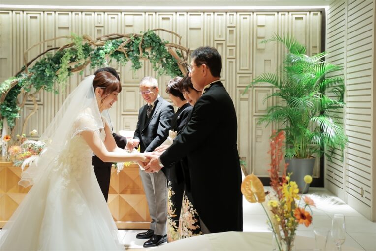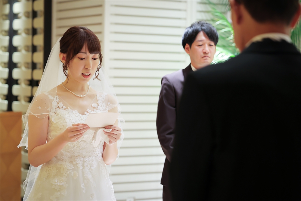 感謝の気持ちを伝える、家族対面。あかりさんが親御様に向けてピアノの演奏をご披露し、親御様への真っすぐな気持ちを届けます。その後は新郎新婦おふたりからお手紙を読み、感謝を言葉にして伝えられました。