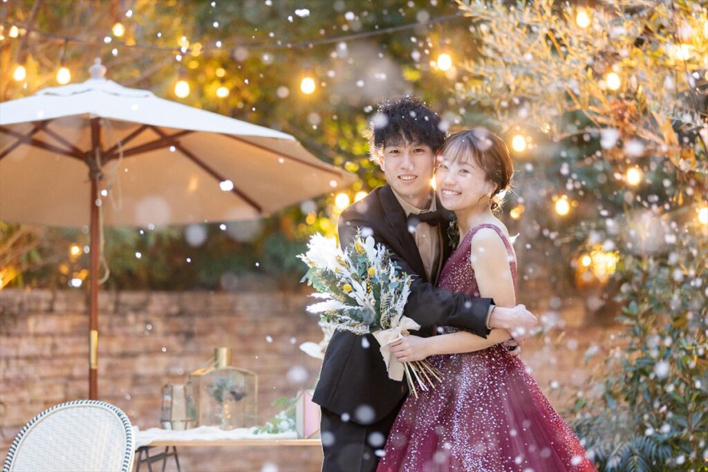 「結婚式の門出では冬らしさを出したい!」とおっしゃっていたおふたりへ、スノーマシンのご提案をしました!