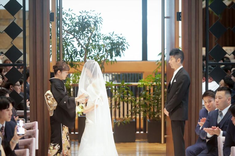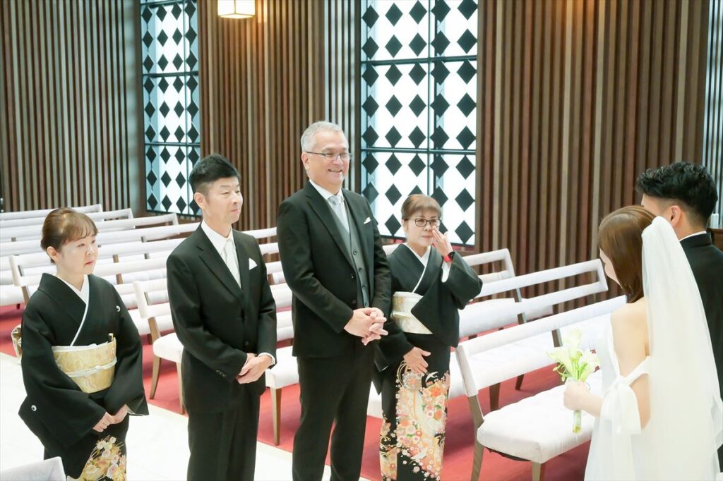 親御様もおふたりの晴れ姿をご覧になり、涙が溢れます。