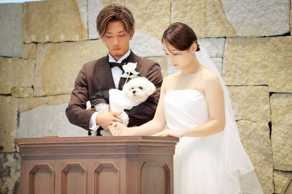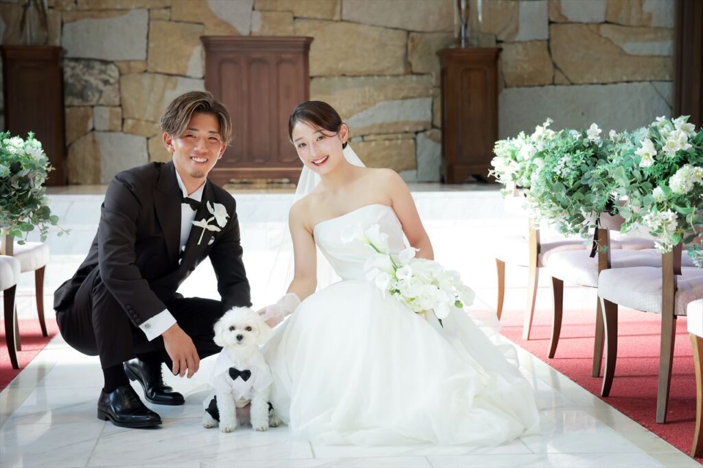 新郎しずまさんと新婦すみかさん、そして愛犬まるちゃんの一日が始まります。