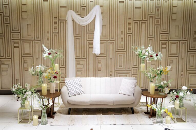いよいよパーティが始まります。おふたりらしくオシャレに彩られたパーティ会場。