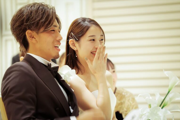 ここからは、ゲストの皆さまからおふたりへお祝いのイベントやケーキセレモニーがあり、おふたりもゲストの皆さまも笑顔が溢れます。