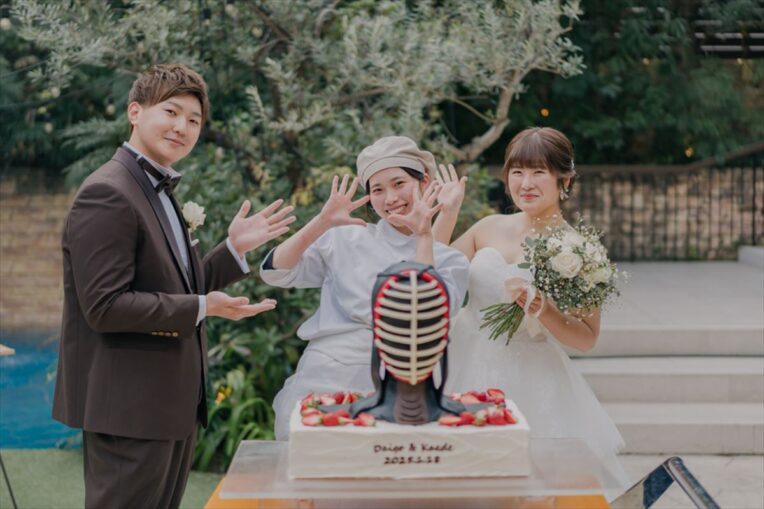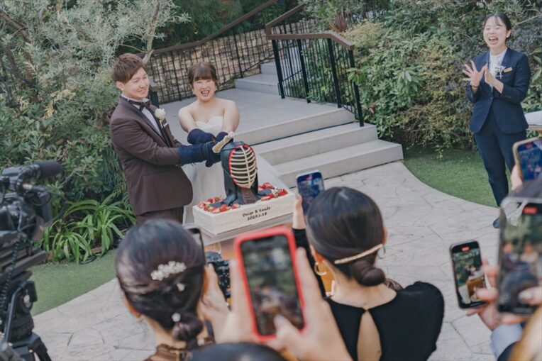 【ウエディングケーキ】剣道グッズを使った入刀シーン