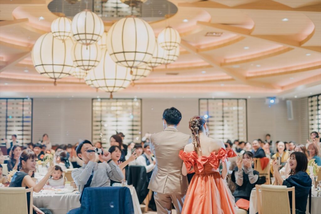 可愛いお子様に乾杯をしていただいたり、ゆうたさんがフランベパフォーマンスをされたり、和やかで賑やかななか余興が始まります。余興の盛り上がりも素晴らしく、皆さまにたくさんお祝いしていただきました!