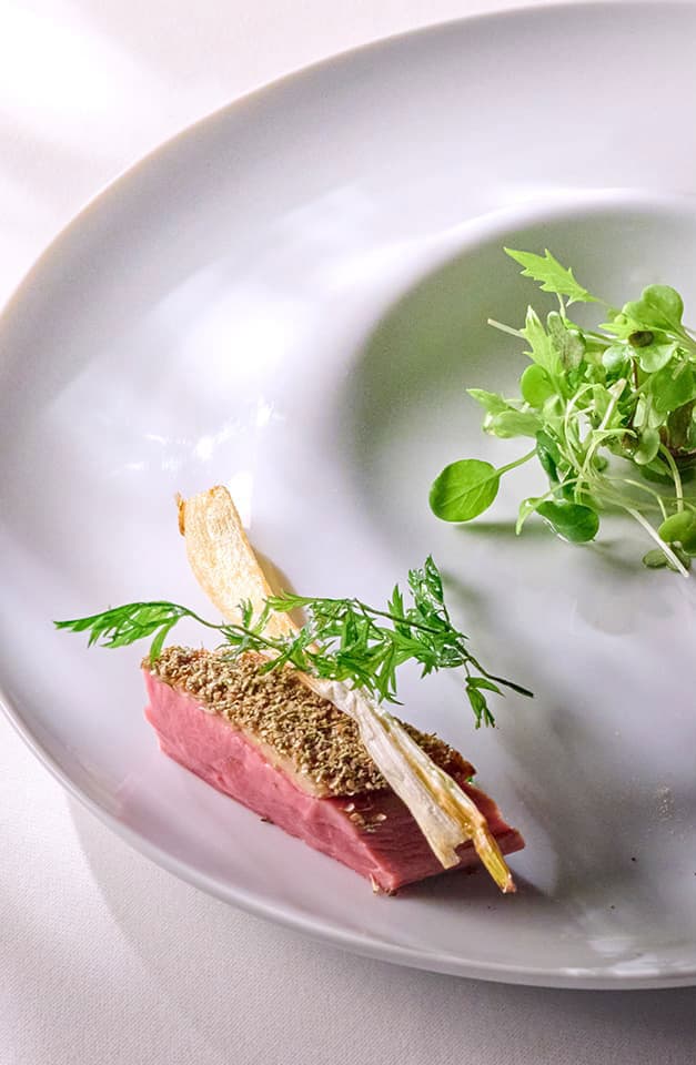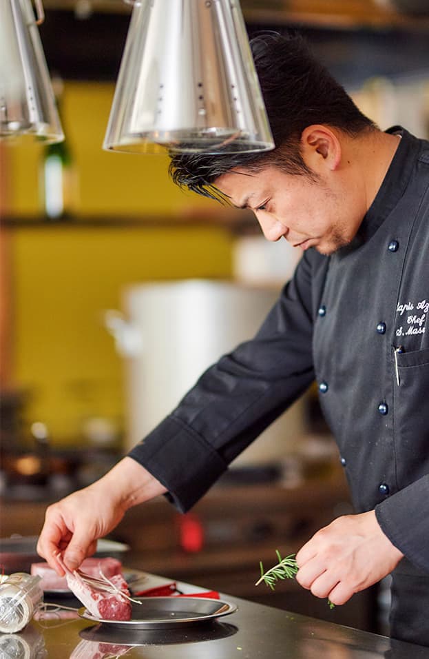 ホテル、洋風懐石料理店での経験を経て、2014年のオープン時より料理長を務める。素材の味わいを最大限活かす調理法、フランス料理の枠に囚われず和や世界中の技巧をも積極的に取り入れるスタイルが魅力。