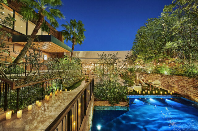 広いガーデンにキャンドルやランタンを灯して幻想的な雰囲気に。昼とは違った時間の流れを満喫できます。